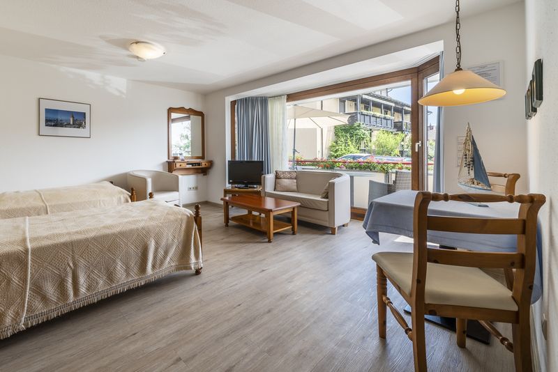 Unsere See-Suite “Mainau” bietet Ihnen mit 2 Räumen ausreichend Platz für bis zu 4 Personen.