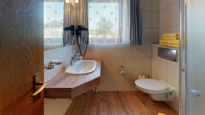 Durch die Lage im Zwischengeschoß, können wir auch in ihrer Mobilität eingeschränkten Gästen den Komfort eines Balkons anbieten.