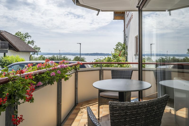 Unser Appartement „Lindau“ liegt mit seinen 34 m² im Zwischengeschoß und bietet Ihnen mit dem überdachten Balkon eine seitliche Seesicht.