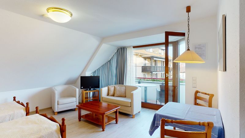 Unsere Appartements und 2-Raum-Suiten sind komfortabel und gemütlich ausgestattet, damit Sie einen angenehmen und entspannten Urlaub verbringen können. Alle Appartements bieten Ihnen über den Balkon eine herrliche Seesicht oder wahlweise einen direkten Zugang zu unserer Liegewiese über die Terrasse.